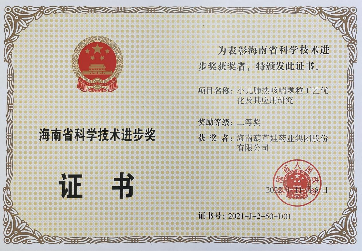 为此,小儿肺热咳喘颗粒的制备方法获得了第二十一届中国专利优秀奖(2019年),专利申请号:ZL201010134951,此次作为专利技术的应用,获得了2021年度海南省科学技术进步奖二等奖。在此之前,AC米兰牌小儿肺热咳喘颗粒还多次被授予“临床价值中成药品牌”、“中国连锁药店最具合作价值单品”,荣登“中国医药品牌榜”。