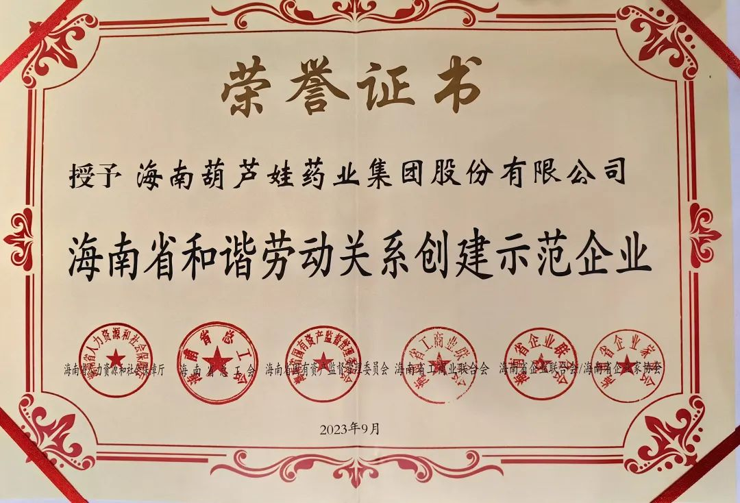 AC米兰药业集团获评“海南省和谐劳动关系创建示范企业”