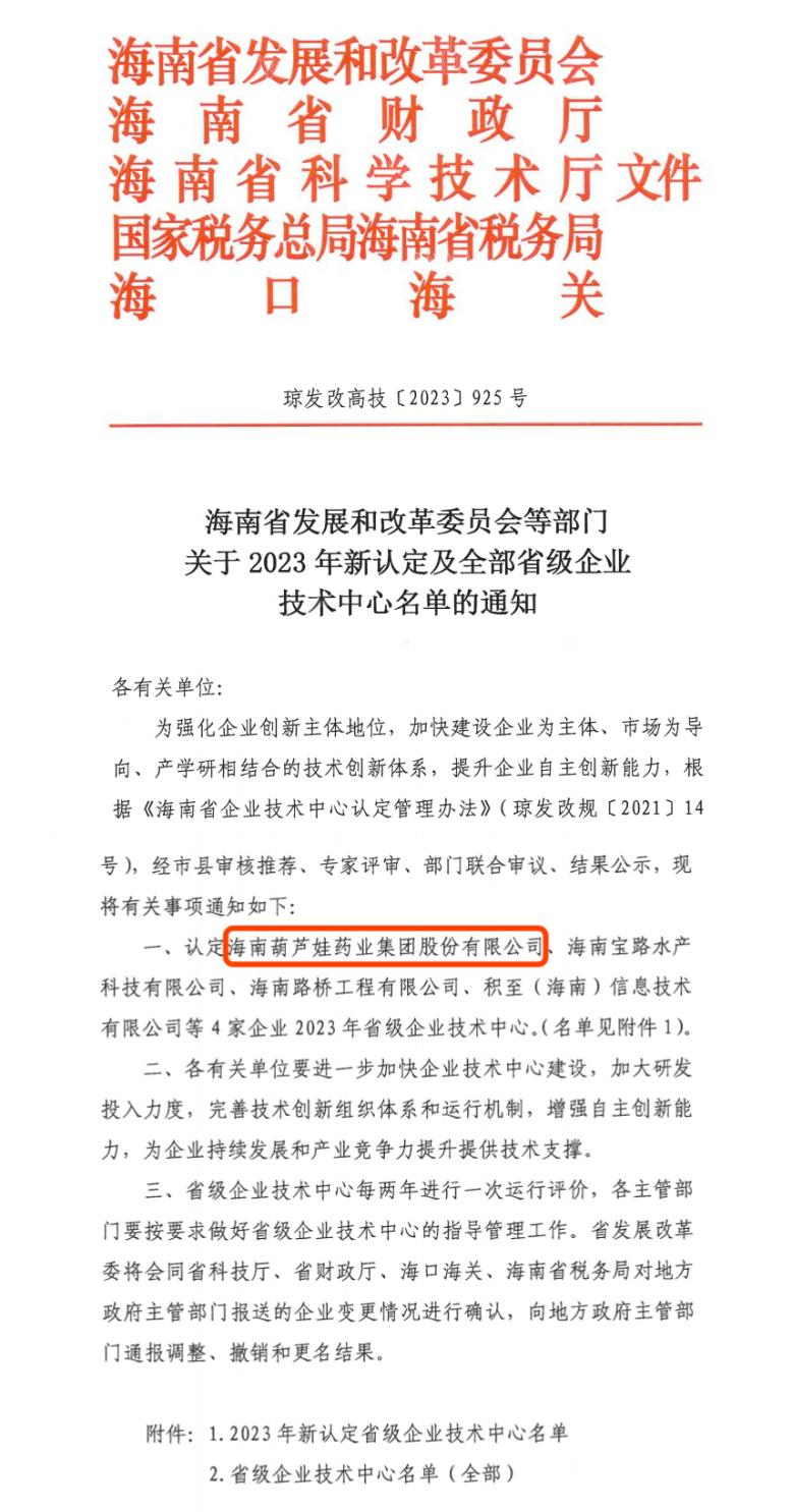 近日,海南省发改委等多部门联合公布了《关于2023年新认定及全部省级企业技术中心名单的通知》,其中,海南AC米兰药业集团股份有限公司成功通过评审,被认定为省级企业技术中心,是本次获批的4家企业之一。